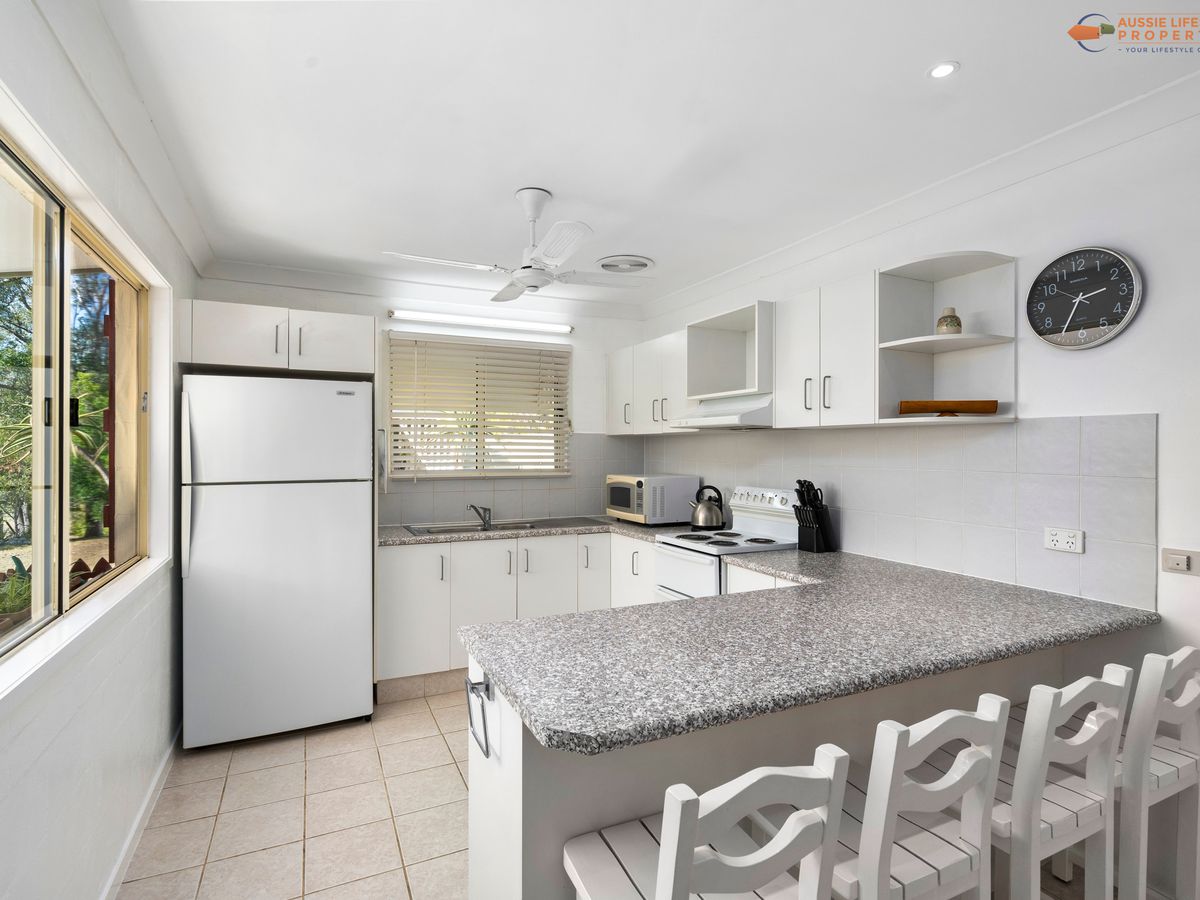 There is a modern, large kitchen with a feel of country living - gas cooktop, new dishwasher and even a wine fridge (wine not included) and the oversized island bench.