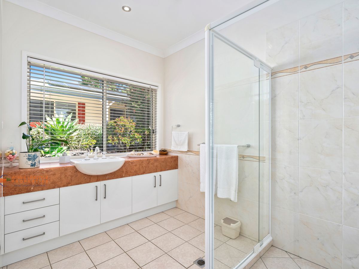 The oversized rooms are designed for the person with a taste for formal living- a monstrous formal lounge, dining and library are all filled with light from the sliding doors to the front verandah. The quality blackbutt floors and high ceilings add the sense of grandeur and space.