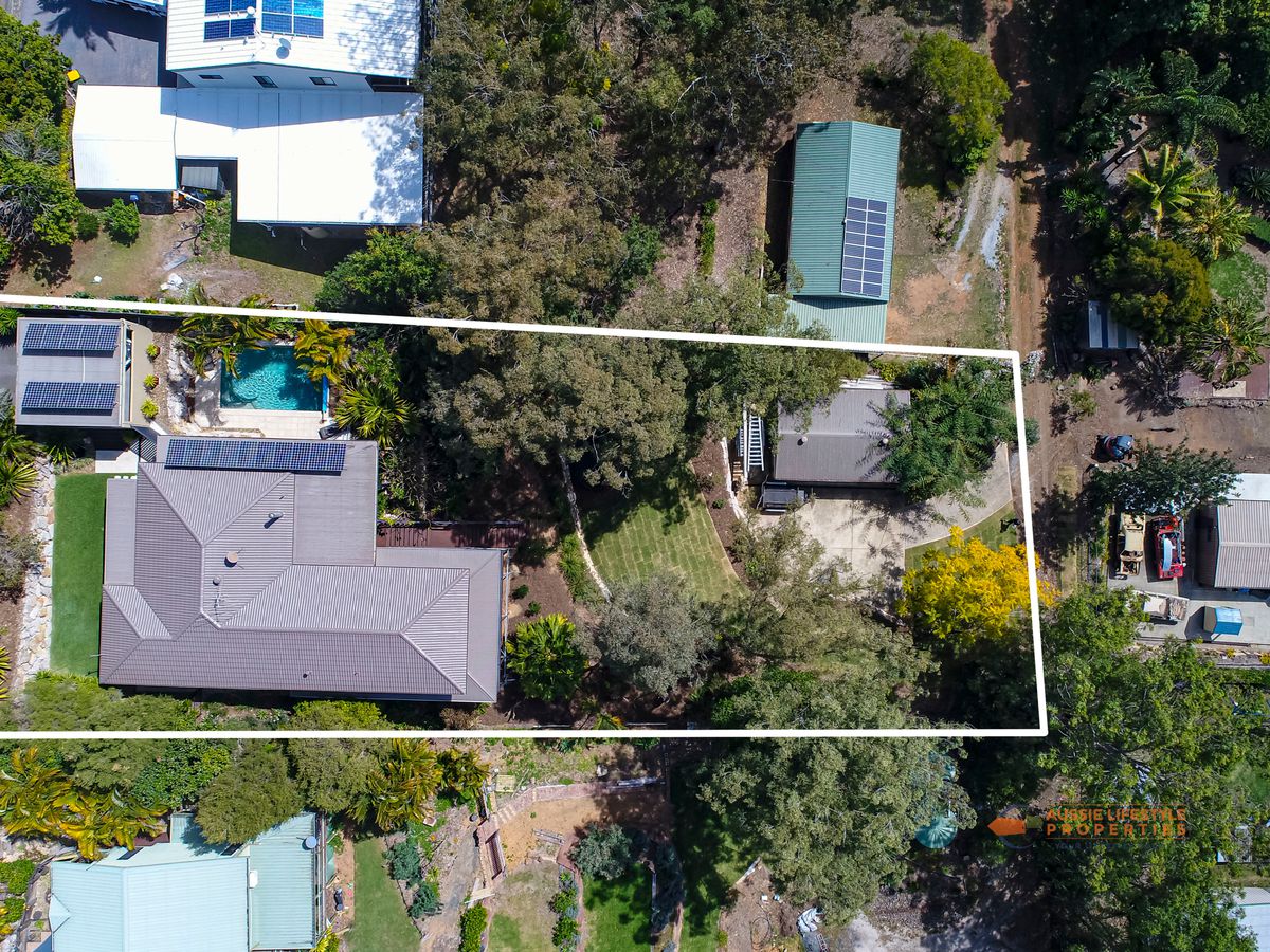 This beautiful modern, elegant home sits high on the street overlooking town toward Mt Tamborine.
